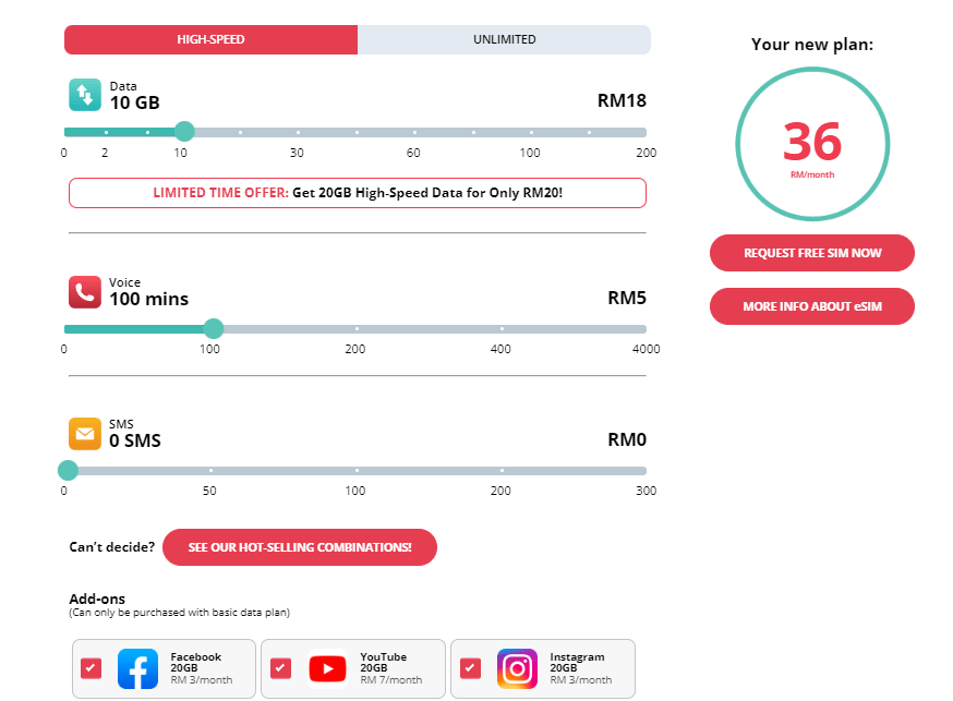 That’s just like Yoodo too. You can customise a personalised plan that suits your exact taste from only RM3/month. Wanna spice up your plan? Stay full on data for your fav apps with Add-Ons from as low as RM1 each.