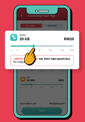 But don’t worry, you can DIY a SUPER affordable Yoodo plan, since 20GB is ONLY RM20!