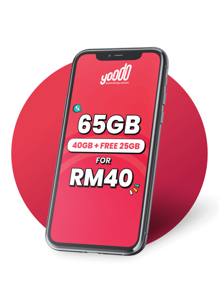 Activate your Yoodo SIM/eSIM and select a 40GB-100GB data plan as your base data plan.For existing users: